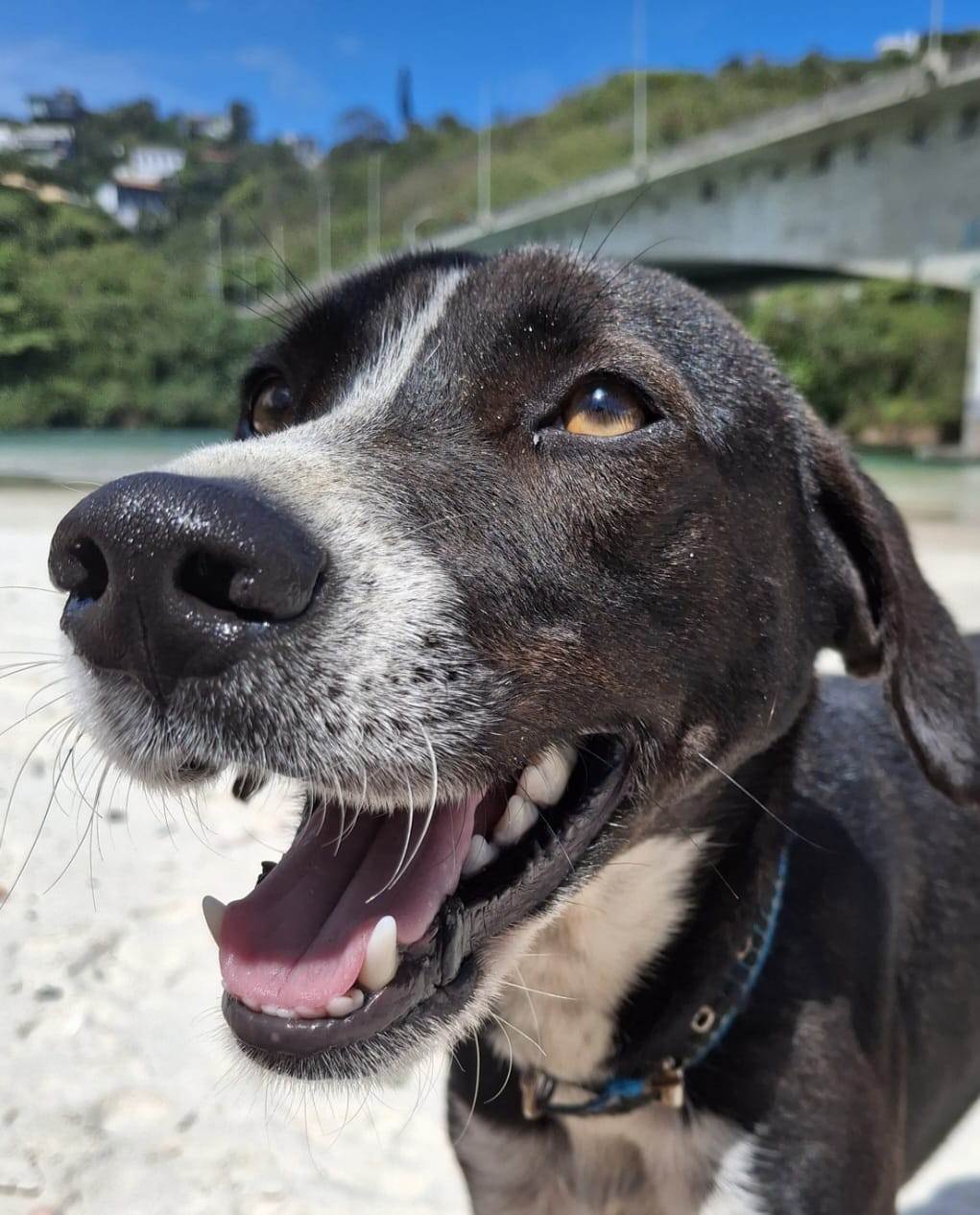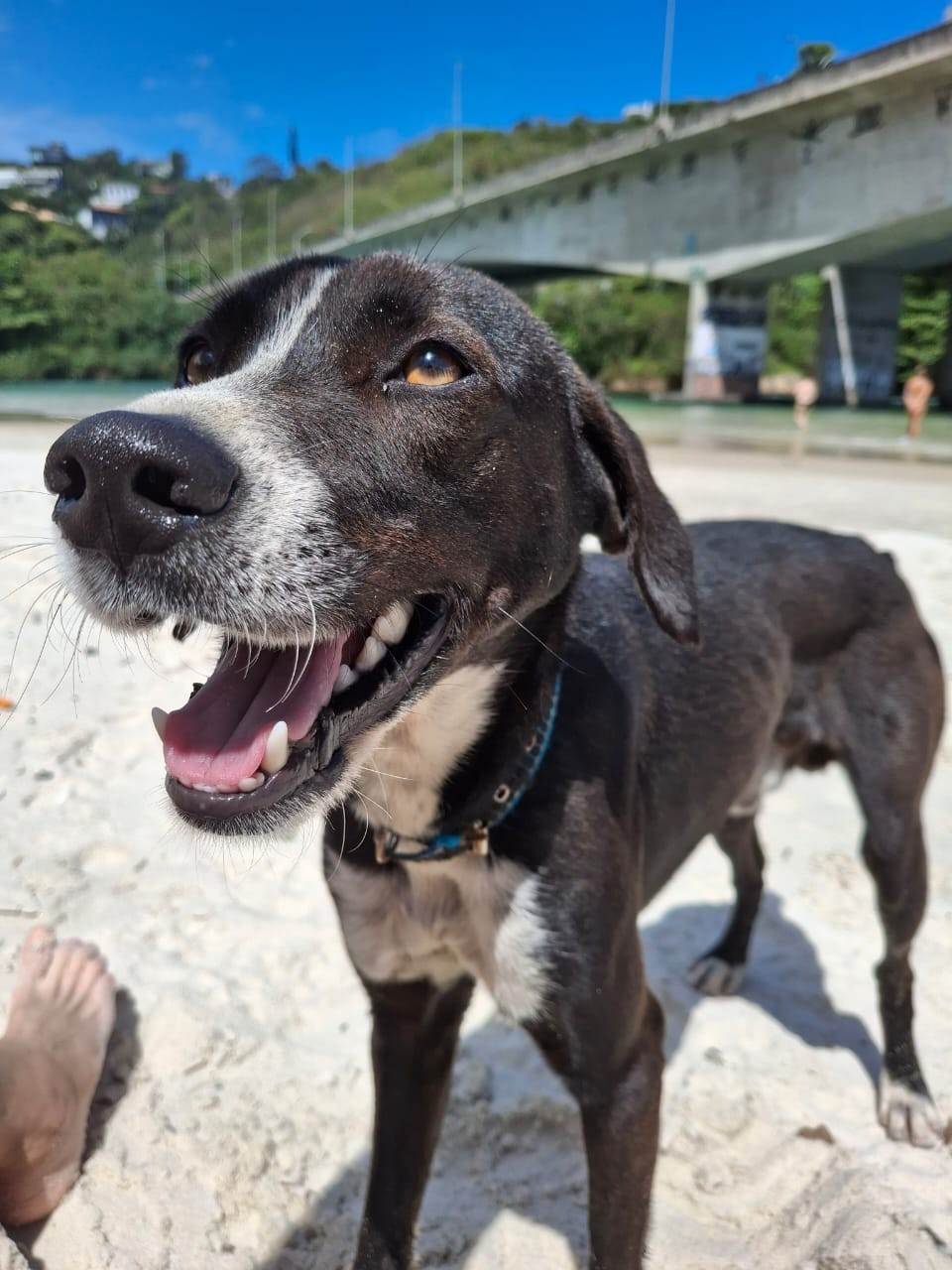Encontrado na praia dos Amores/Barra da Tijuca. Aproximadamente um ano. Muito assustado e faminto. Gosta de carinho.