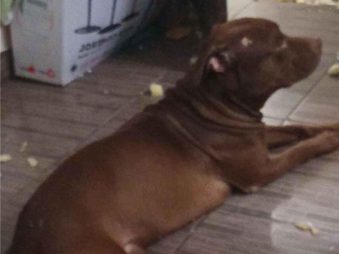 Cachorro médio, 2 anos, Pit-Bull, cor Marrom.